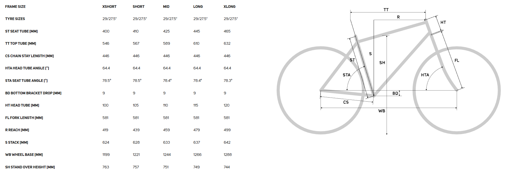 * All specifications listed are subject to change without notice. Please note that our specifications may be impacted by manufacturer component substitution changes caused by high global demand for bikes and resulting supply chain issues in the bike industry. We recommend confirming the specifications with your local Evo Cycles showroom if you have any questions.