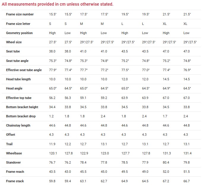| max tyre size | Frame - 27.5x2.60", Fork - See manufacturer |